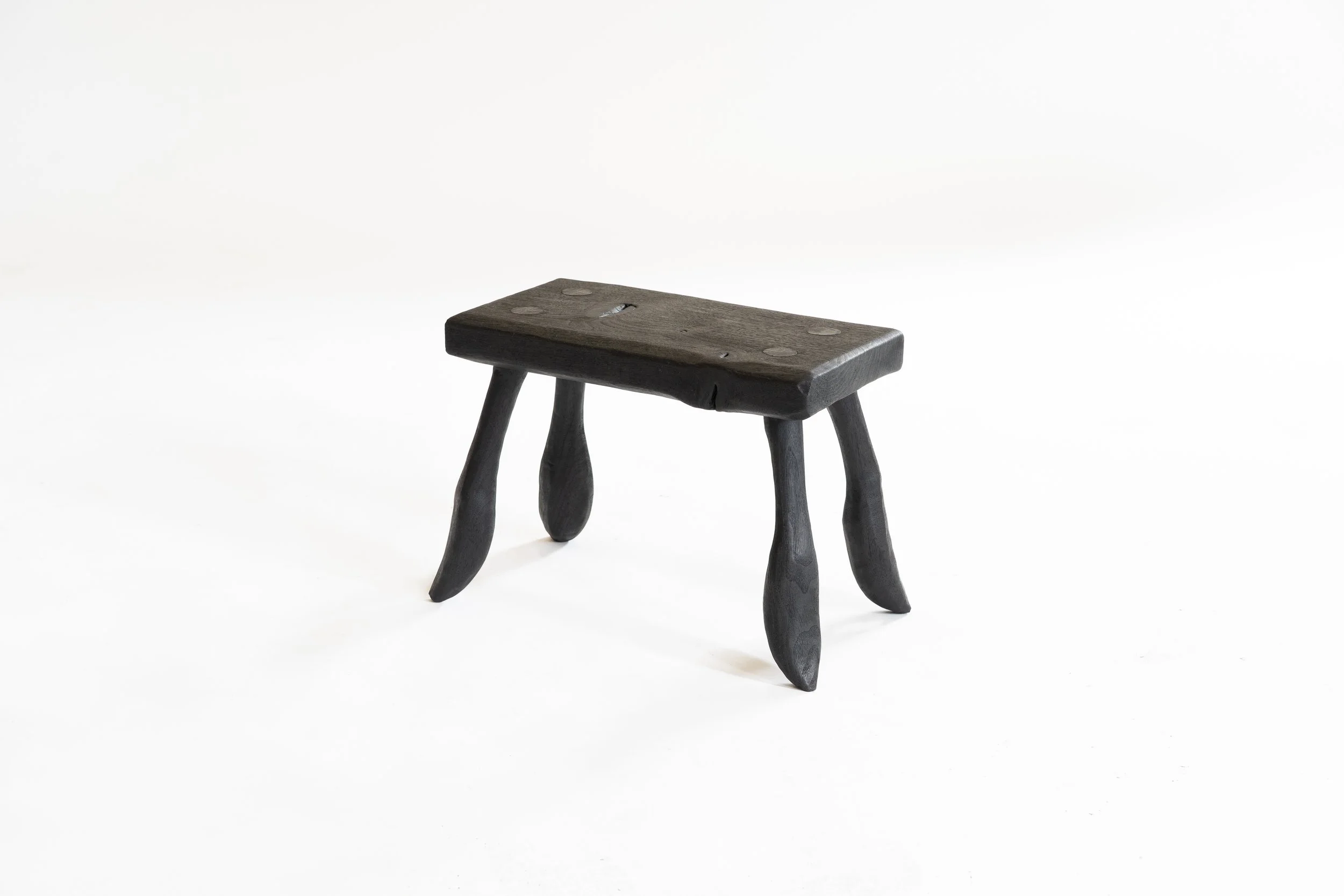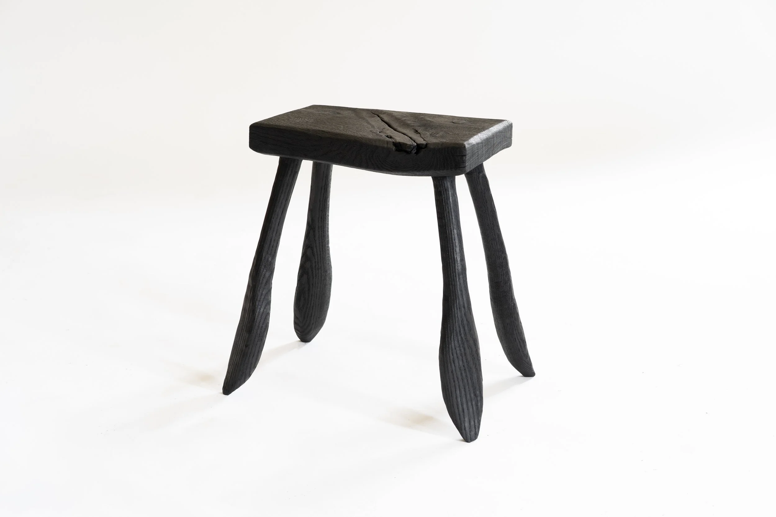 Below is a small bath of Faux Shou Sugi Ban stools/small side tables I’ve made for a holiday sale. Made from scrap from throughot the year, these pieces are turned, sculpted, and burnt. A departure from my ordinarily precise, premeditated work, their design’s are informed by their material in creation and take on a life of their own. The organic nature of the design, finish, and use of scraps allows me to offer these items at a more affordable price.